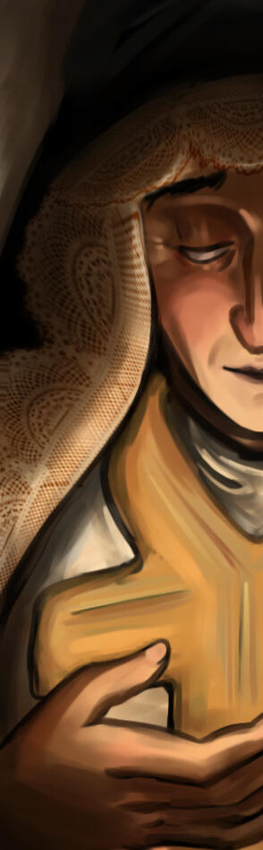 A flat, colored sketch of a character/person against a simple or solid-color background of choice. With simple shading.